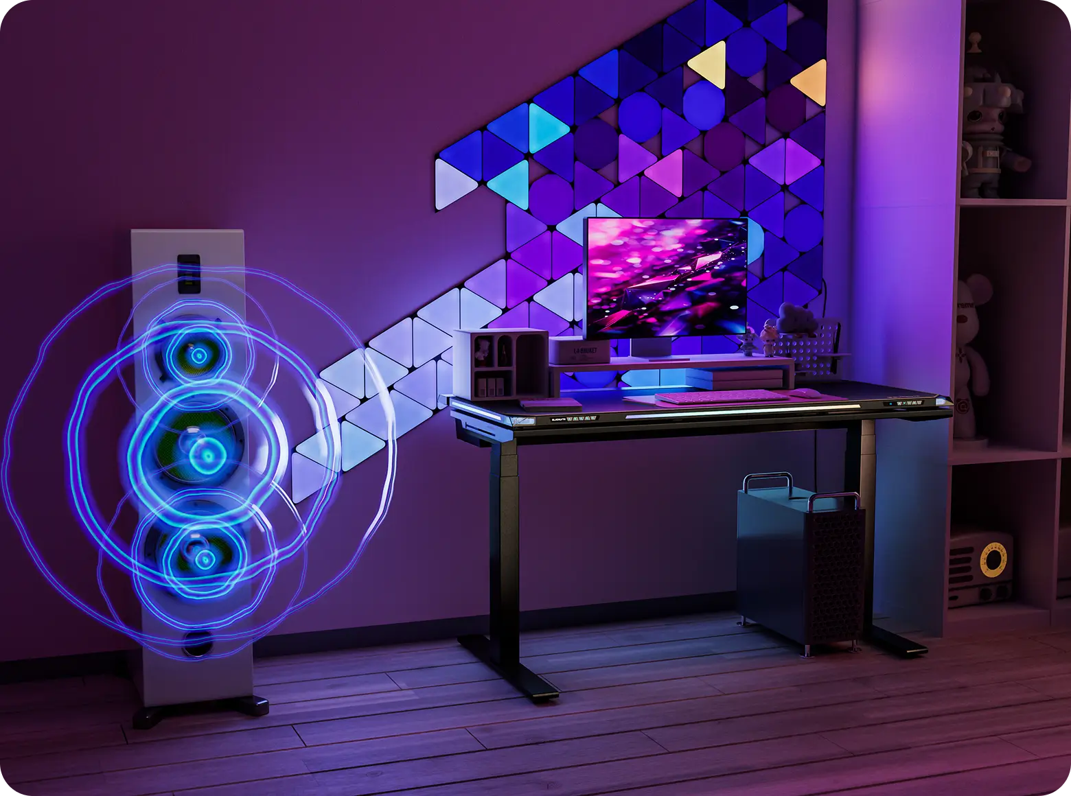 The Atlas is designed for gamers and content creators, with RGB lighting, PC program synchronization, and the ability to match game algorithms for an immersive setup.